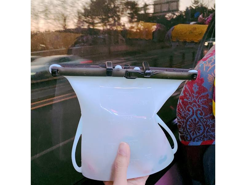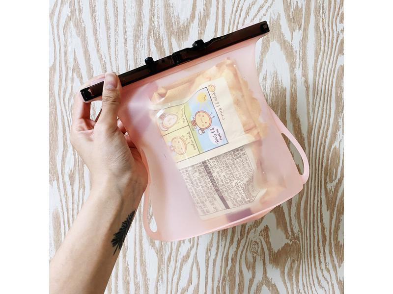 重複使用的容器最擔心的就是清潔問題,仁舟矽密袋的貼心設計也解決了這個困擾~可以直接把整個袋身內外翻過來清潔,沖洗完畢之後我喜歡倒著放讓他晾乾,讓碰到食物的內側袋身保持乾燥,搭配密封膠條可以輕鬆維持站立狀態,放在飯店洗手台旁邊或桌上都很方便!