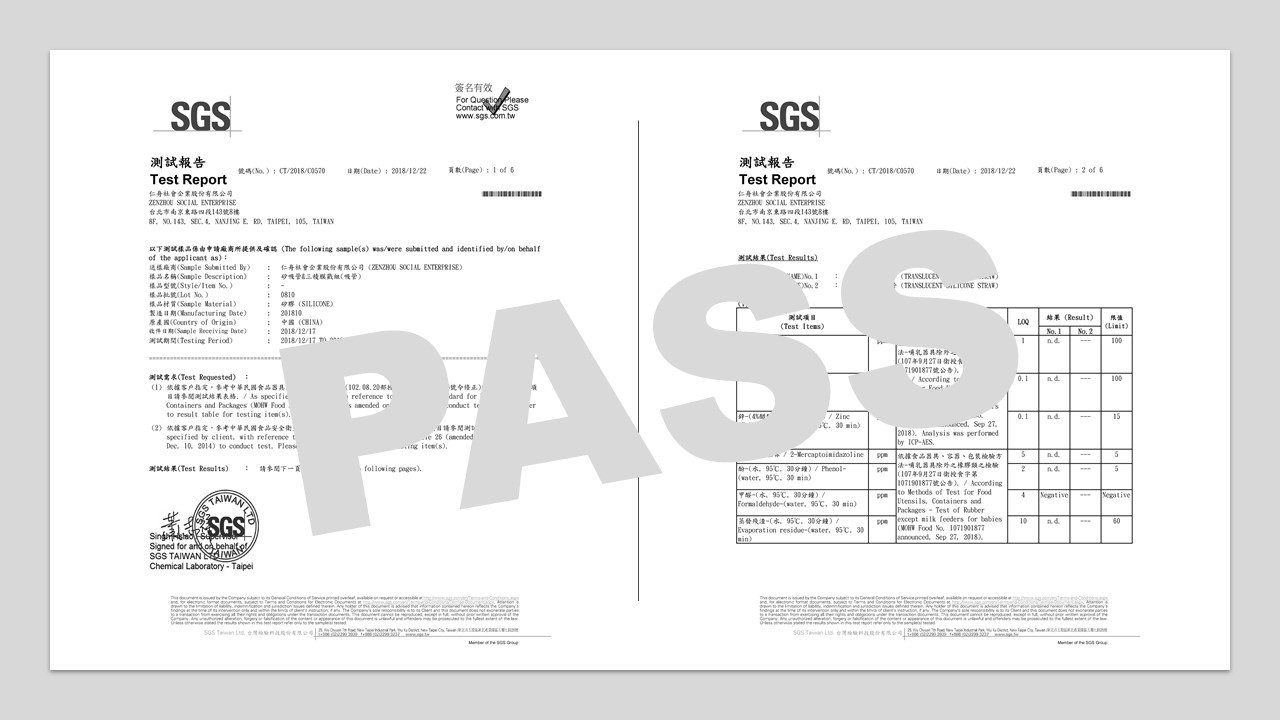 通過中華民國SGS食品容器安全檢驗規範的驗證,