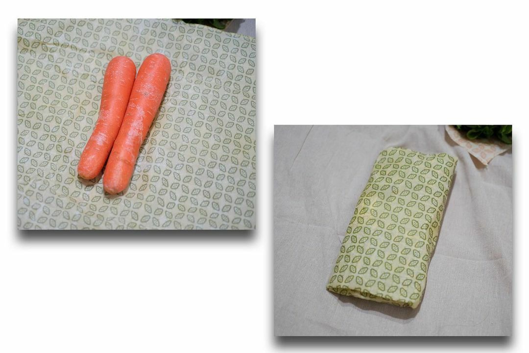 不用清洗的葉菜類、根莖蔬菜和瓜果用蜂蠟布包起來