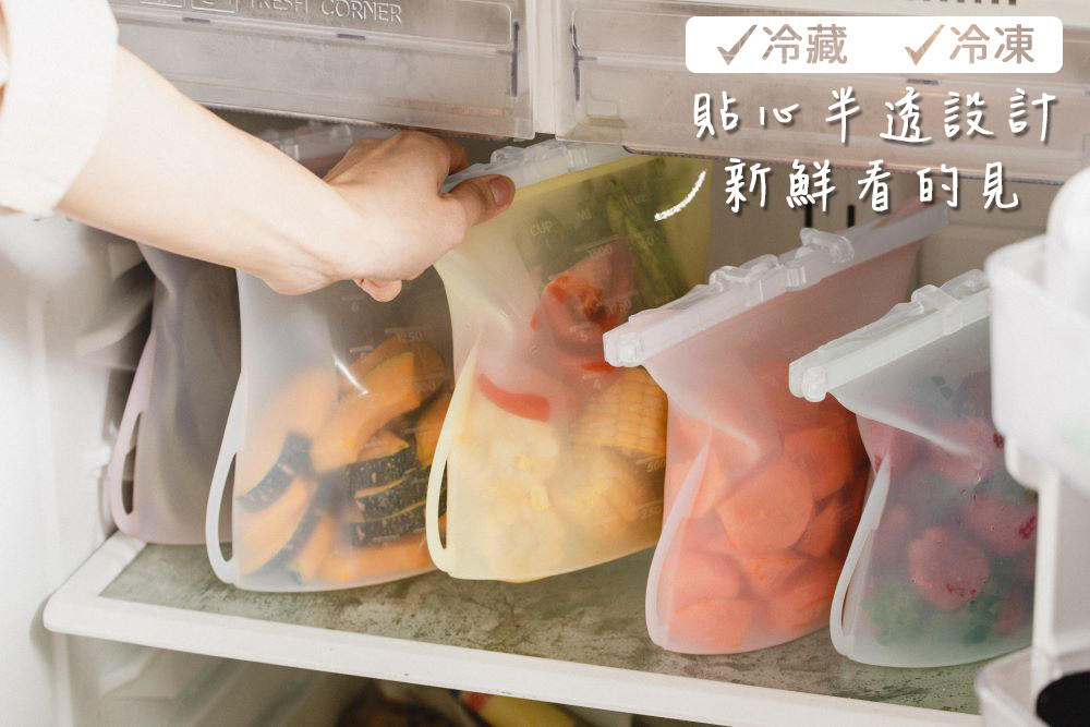 將矽膠環保餐盒取代占空間的保鮮盒,同時冷凍食材到加熱餐點、外帶熱湯麵到冰豆花,都能以一打十,減少得因應商品不足的地方而多買其他物品的問題,讓小空間也能輕鬆收納愛地球的心意與行動。