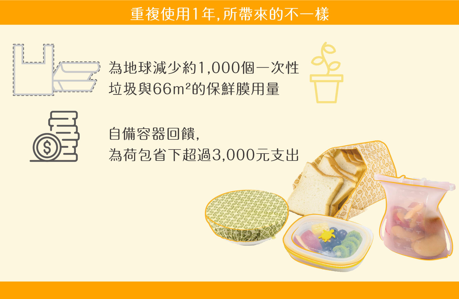 只要1個矽密盒,1年約可減少1000個一次性餐盒的使用。