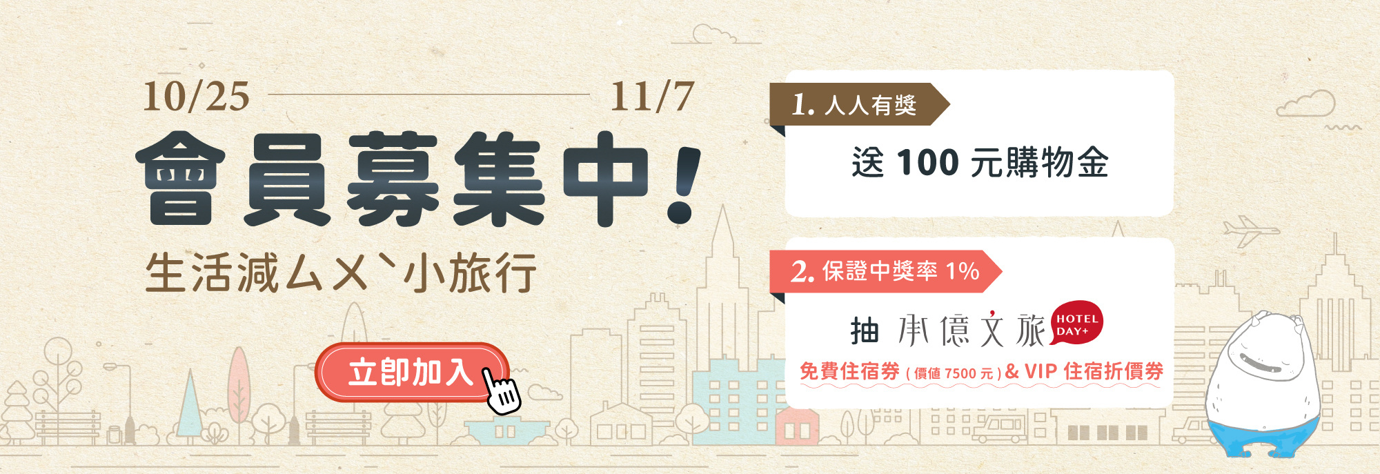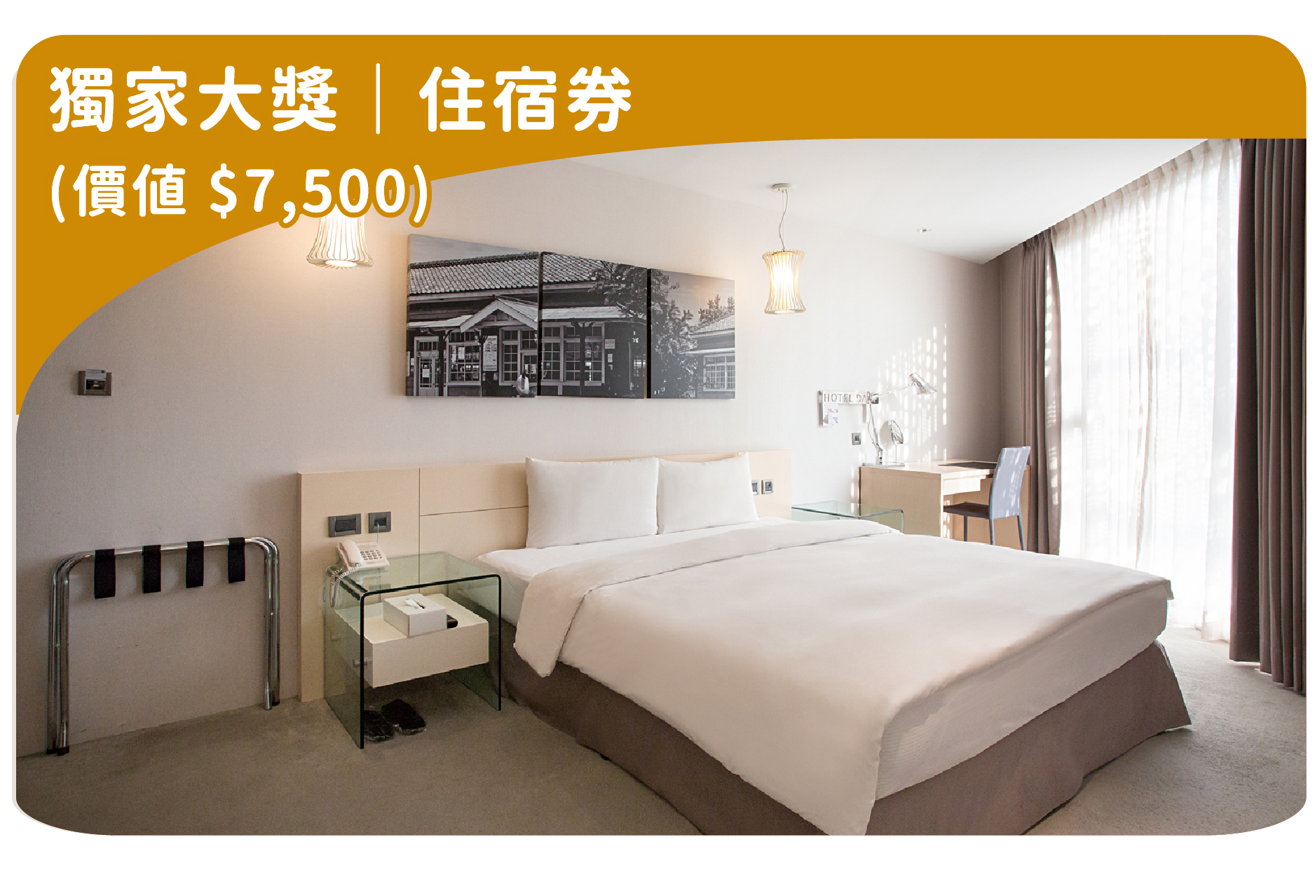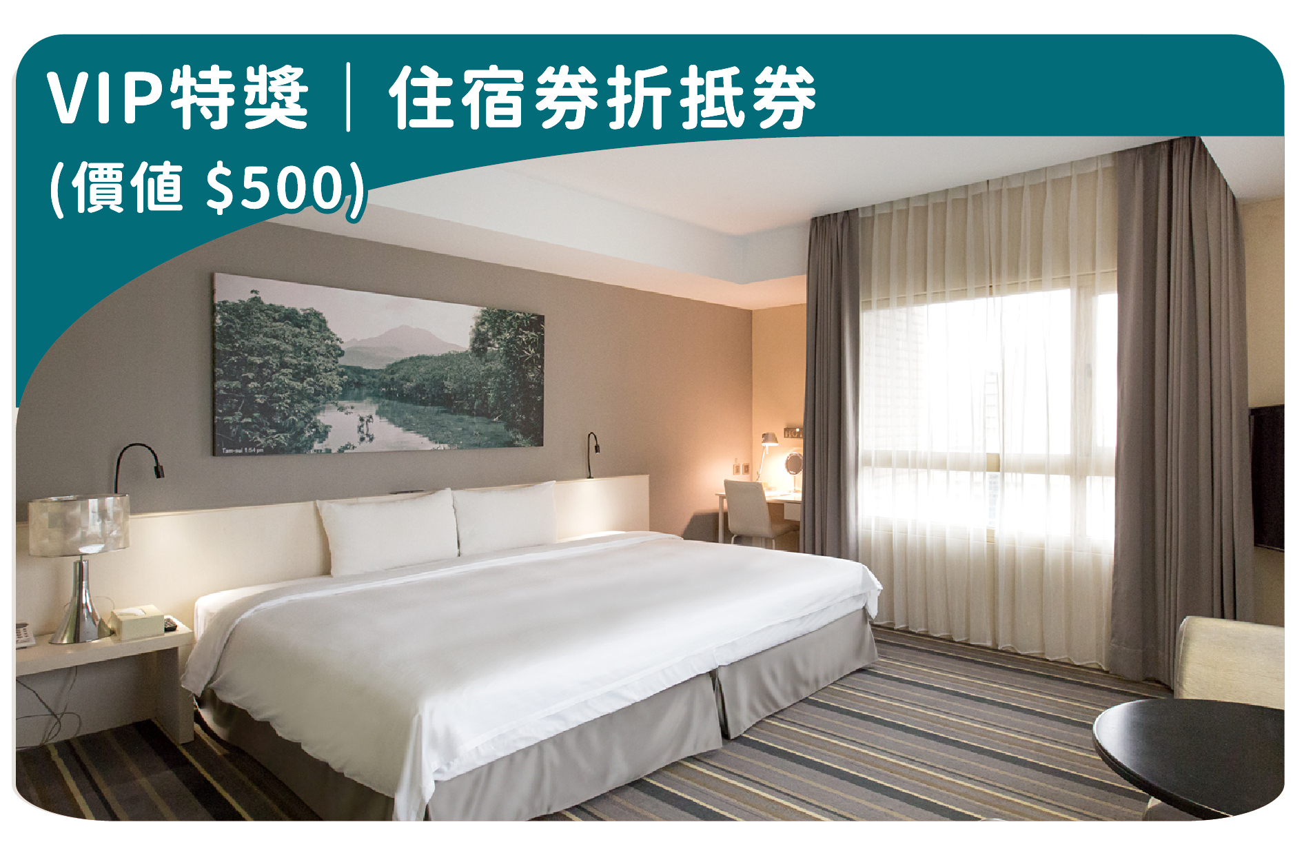 獨家大獎|承億文旅住宿券,價值新台幣7,500元,共4名;VIP特獎|500元住宿折抵券,價值新台幣500元,共10名。