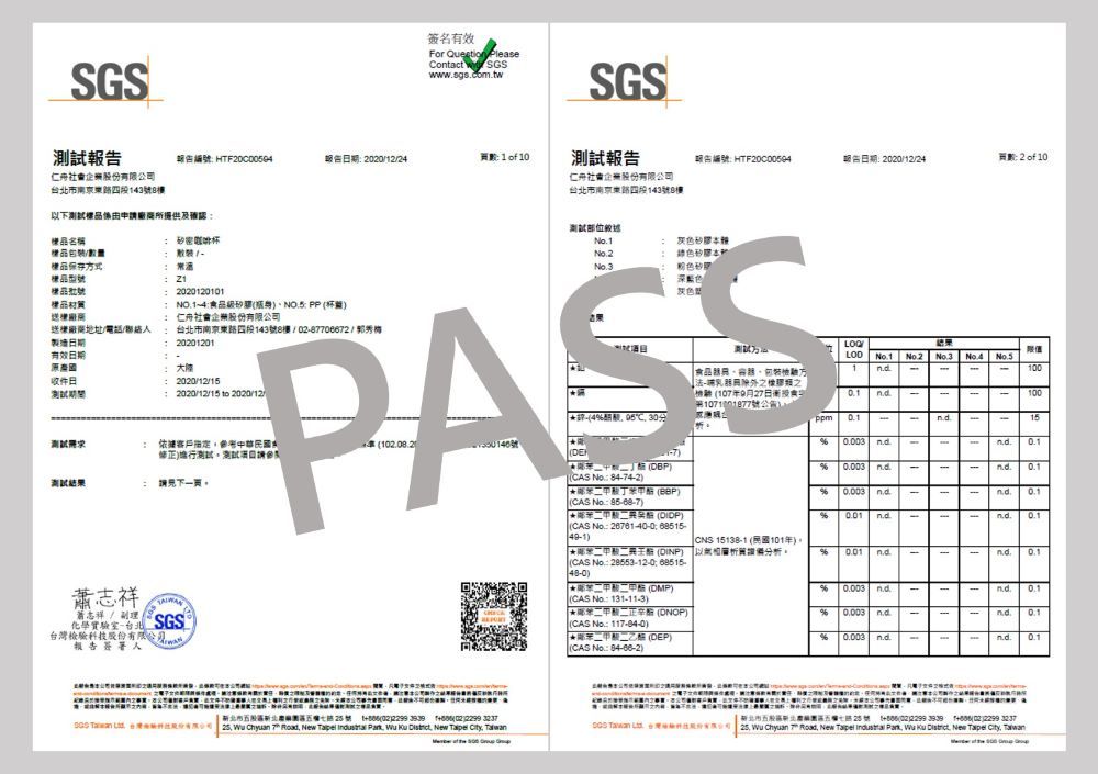 通過SGS符合中華民國食品容器安全檢驗規範的驗證,