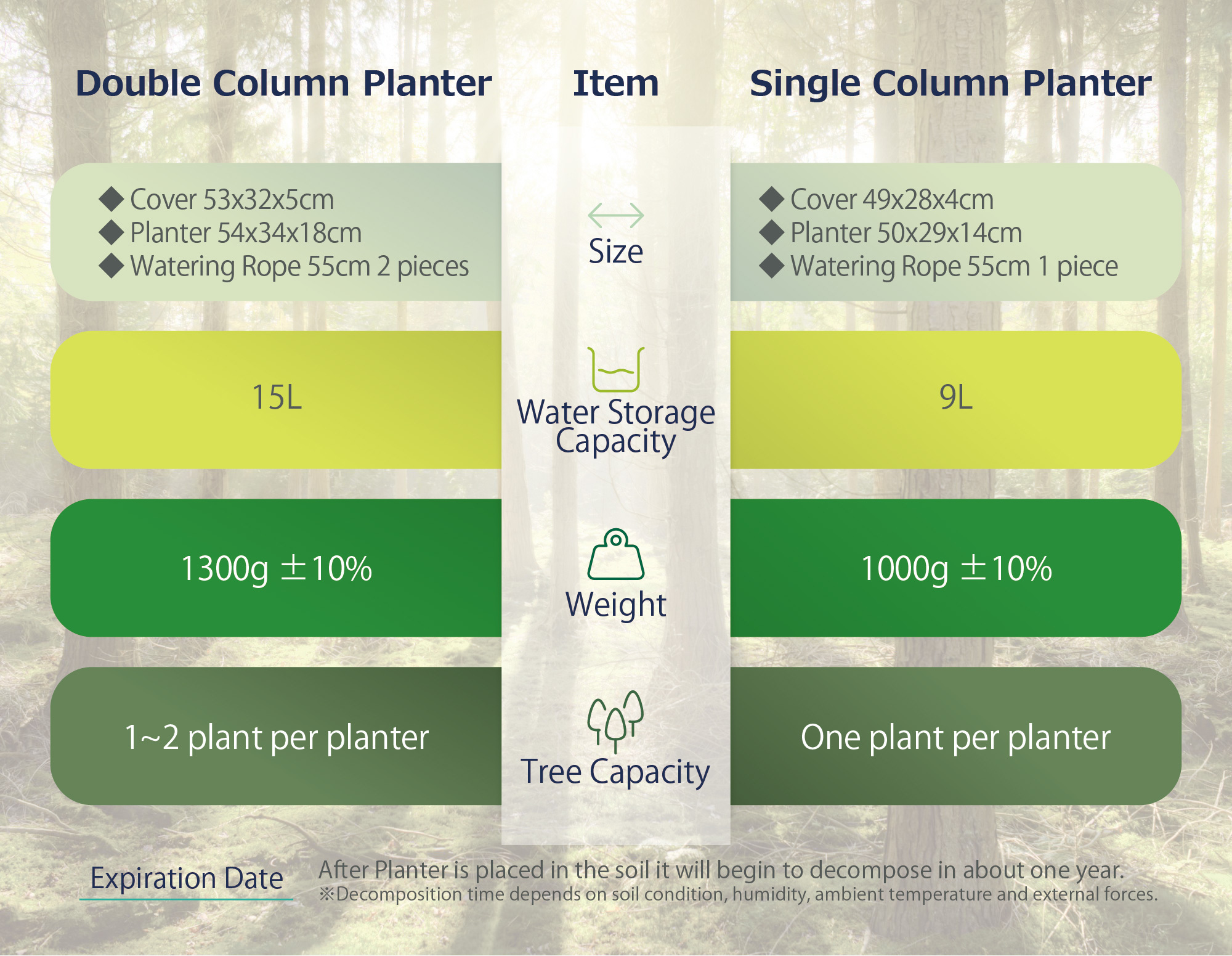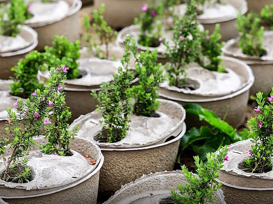 Incorporates natural, layered materials to increase the hardness and durability of the tree planter. The planter is wind-proof, sun-proof, and weed-proof, and increases water retention, which helps to improve the seedlings’ growth rate.