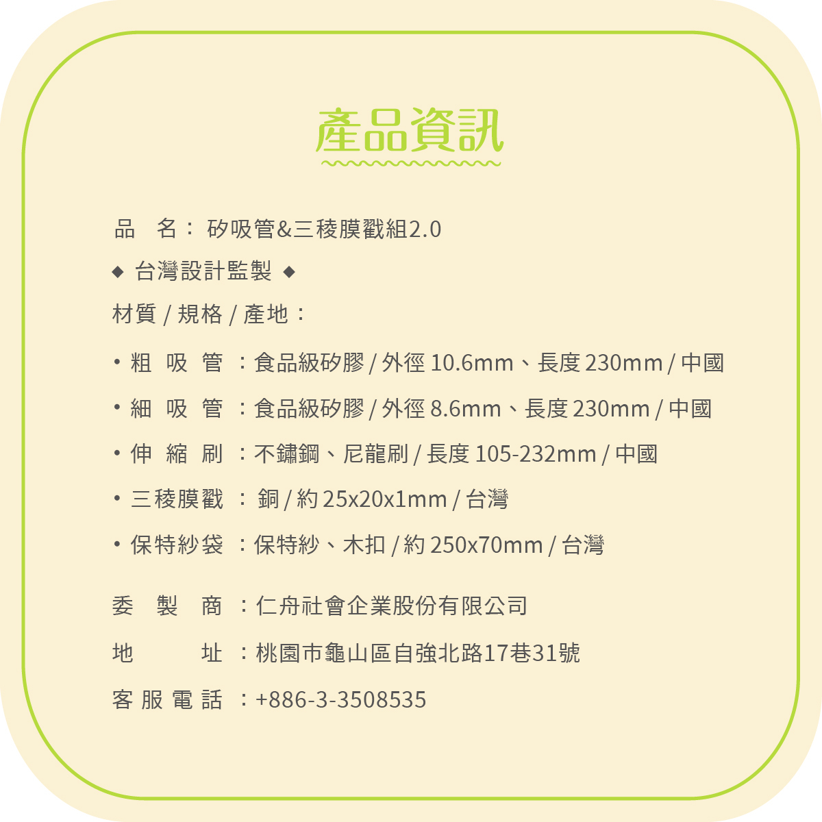 首創「三稜膜戳」設計,繫掛袋上隨飲隨用。