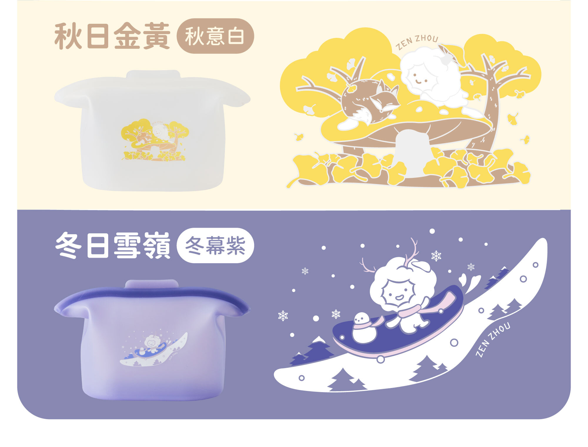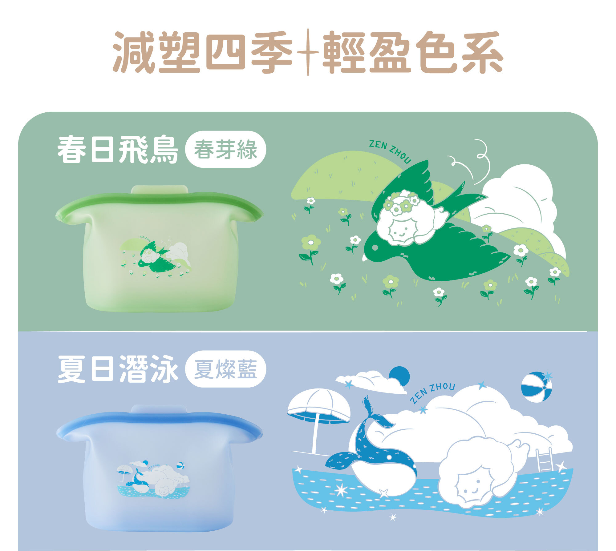 【仁舟淨塑】雲朵好矽包(四季款) 4件包色組 1000ml | 矽膠食物袋/保鮮袋