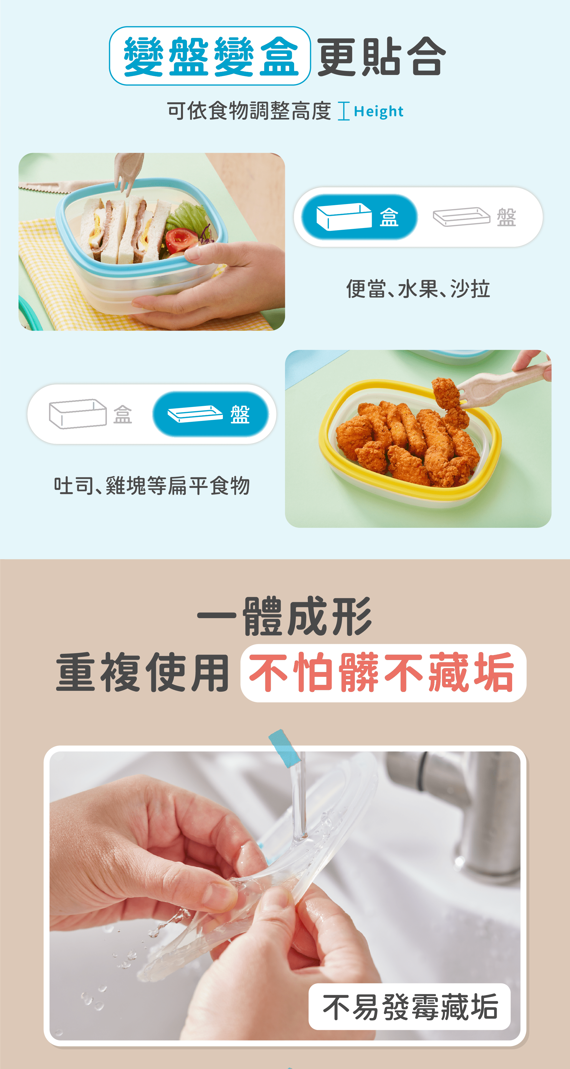 3.盛裝色素食材如咖哩等請儘速清洗,如有染色情況不影響商品使用。