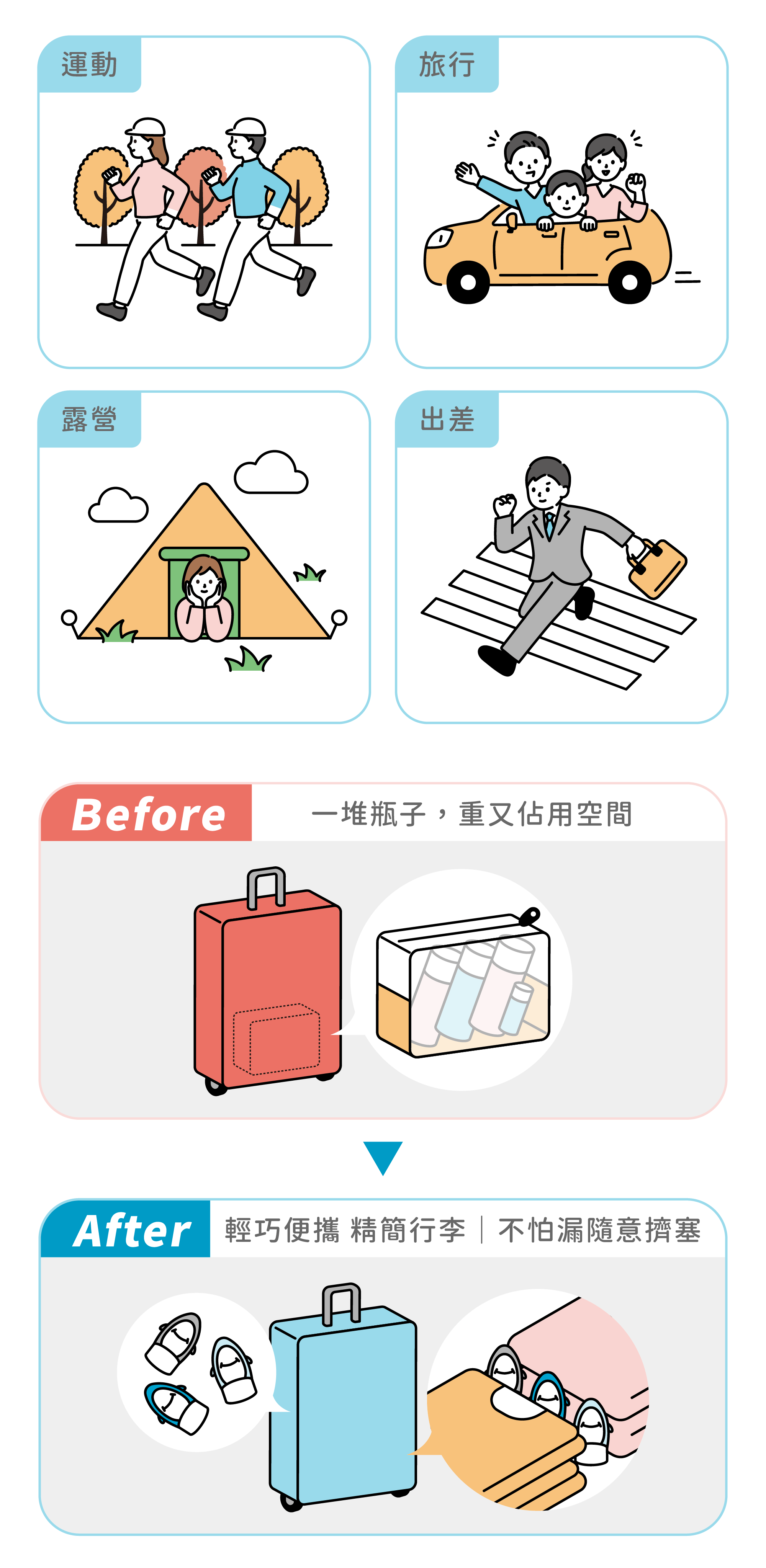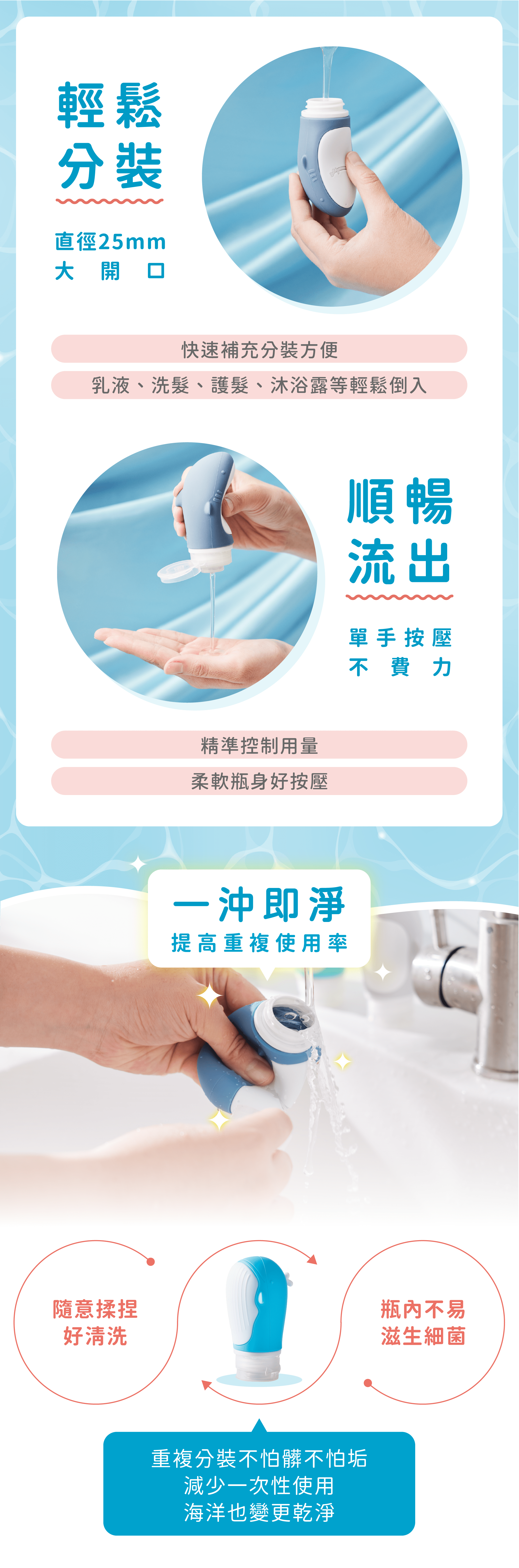 🔸分裝瓶 3 層特殊止閥緊密不漏,安心攜帶各種液體