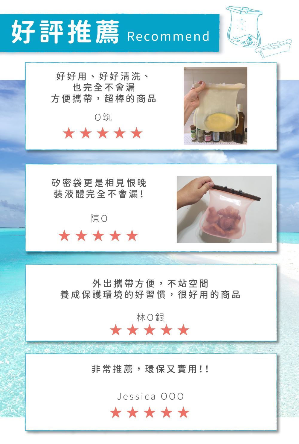 材質好清洗、重複使用好環保。