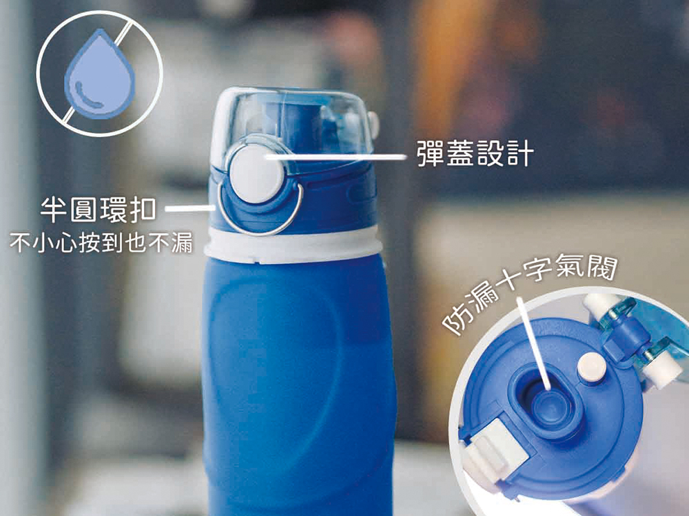 搭配「彈蓋設計」「半圓扣環」「防漏氣閥」,升級防漏三重奏